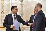 Заседании Национального Совета реформ Украины. Слева направо: заместители главы администрации президента Украины Алексей Филатов, Дмитрий Шимкив, глава администрации президента Украины Борис Ложкин и председатель Верховной Рады Украины Владимир Гройсман на заседании.