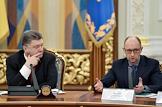 Президент Украины Петр Порошенко (слева) и премьер-министр Украины Арсений Яценюк (справа) во время заседания Национального Совета реформ.