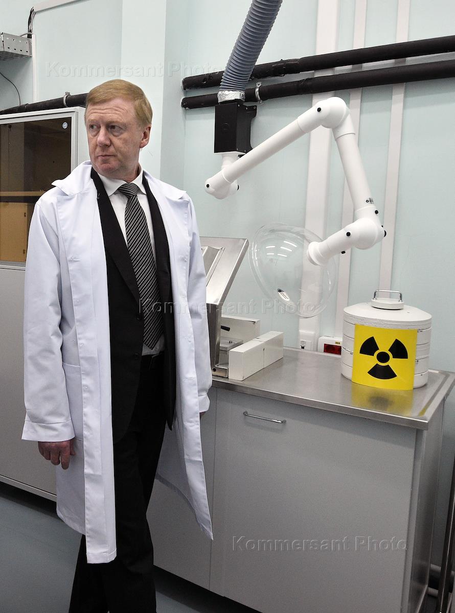Рабочая поездка председателя правительства России Дмитрия Медведева в Уфу. Председатель Правления ОАО "РОСНАНО" Анатолий Чубайс во время посещения Центра ядерной медицины.