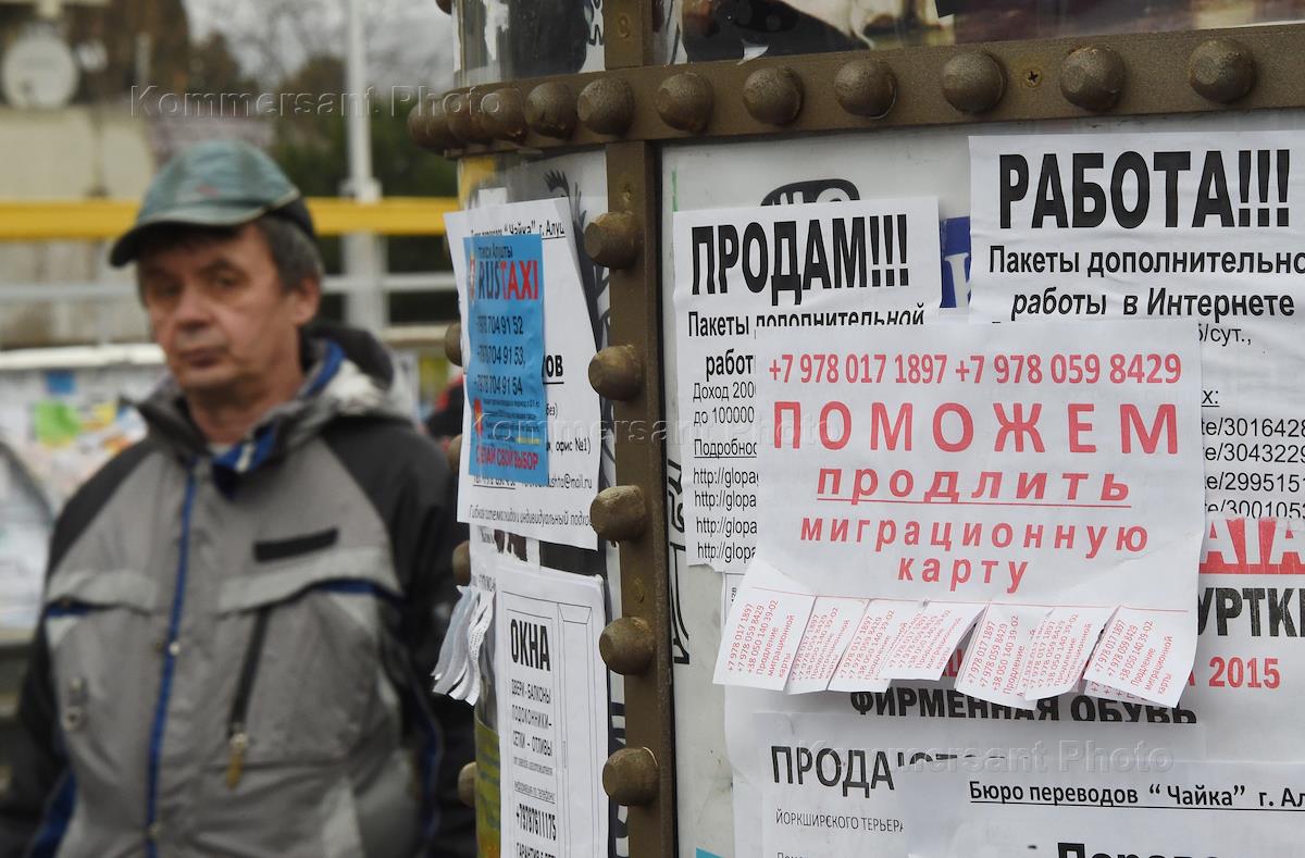 Виды Симферополя. Реклама агентства недвжимости "Крым" на улице города.