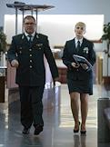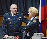 Начальник службы таможенного контроля после выпуска тваров Центрального таможенного управления Елена Макарова (слева) и начальник Центрального таможенного управления Сергей Прусов (справа) во время пресс-конференции в Центральном таможенном управлении.