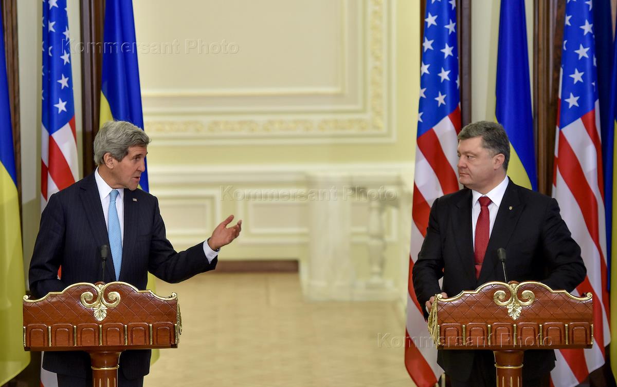 Государственный секретарь США Джон Керри во время встречи с президентом Украины Петром Порошенко в Киеве.