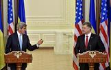 Государственный секретарь США Джон Керри (слева) и президент Украины Петр Порошенко во (справа) время встречи в Киеве.