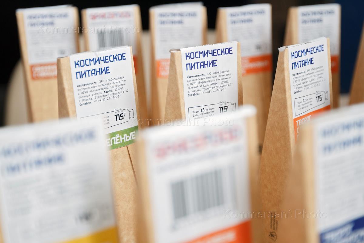 Продажа космического питания для обычных покупателей в павильоне "Космос" на территории ВДНХ.
