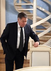 Председатель Верховного Суда России Вячеслав Лебедев во время интервью в Верховном суде.
