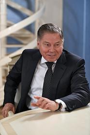 Председатель Верховного суда России Вячеслав Лебедев во время интервью в Верховном суде.