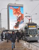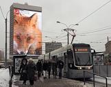 Жанровая фотография. Рекламная светодиодная панель на здании института "Гидропроект" на перекрестке Волоколамского и Ленинградского шоссе.