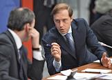 Рабочая поездка председателя правительства России Дмитрия Медведева в Воронеж. Министр промышленности и торговли России Денис Мантуров на совещании по вопросам стабильного функционирования химического и нефтехимического комплекса. Совещание прошло на площадке ЗАО "Воронежский шинный завод".
