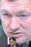 IV Российский инвестиционно-строительный форум (РИСФ-2015). Заместитель мэра Москвы по вопросам градостроительной политики и строительства Марат Хуснуллин (на экране монитора) на форуме в Гостином Дворе.