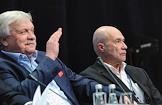 IV Российский инвестиционно-строительный форум (РИСФ-2015) прошел в Гостином Дворе. Президент РААСН, генеральный директор ОАО "НИЦ "Строительство" Александр Кузьмин (слева) и президент Союза Архитекторов России Андрей Боков (справа) на пленарном заседании форума.