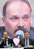 IV Российский инвестиционно-строительный форум (РИСФ-2015). Слева направо: президент Национального объединения проектировщиков Михаил Посохин, министр строительства и жилищно-коммунального хозяйства России Михаил Мень, первый заместитель председателя комитета Государственной думы (ГД) России по жилищной политике и жилищно-коммунальному хозяйству Елена Николаева на форуме в Гостином Дворе.