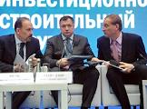 IV Российский инвестиционно-строительный форум (РИСФ-2015). Слева направо: министр строительства и жилищно-коммунального хозяйства России Михаил Мень, заместитель мэра Москвы по вопросам градостроительной политики и строительства Марат Хуснуллин, президент корпорации "Баркли" Леонид Казинец на форуме в Гостином Дворе.