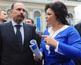 IV Российский инвестиционно-строительный форум (РИСФ-2015). Министр строительства и жилищно-коммунального хозяйства России Михаил Мень (слева) и первый заместитель председателя комитета Государственной думы (ГД) России по жилищной политике и жилищно-коммунальному хозяйству Елена Николаева (справа) на форуме в Гостином Дворе.