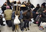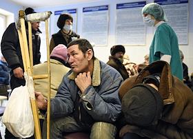 День открытых дверей в Центре социальной адаптации бездомных (ЦСА) "Люблино". Люди в ожидании очереди на прием.