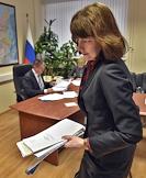 Заместитель министра экономического развития России - руководитель Федерального агентства по управлению государственным имуществом Ольга Дергунова во время приема граждан министром экономического развития России Алексеем Улюкаевым в общественной приемной правительства России.