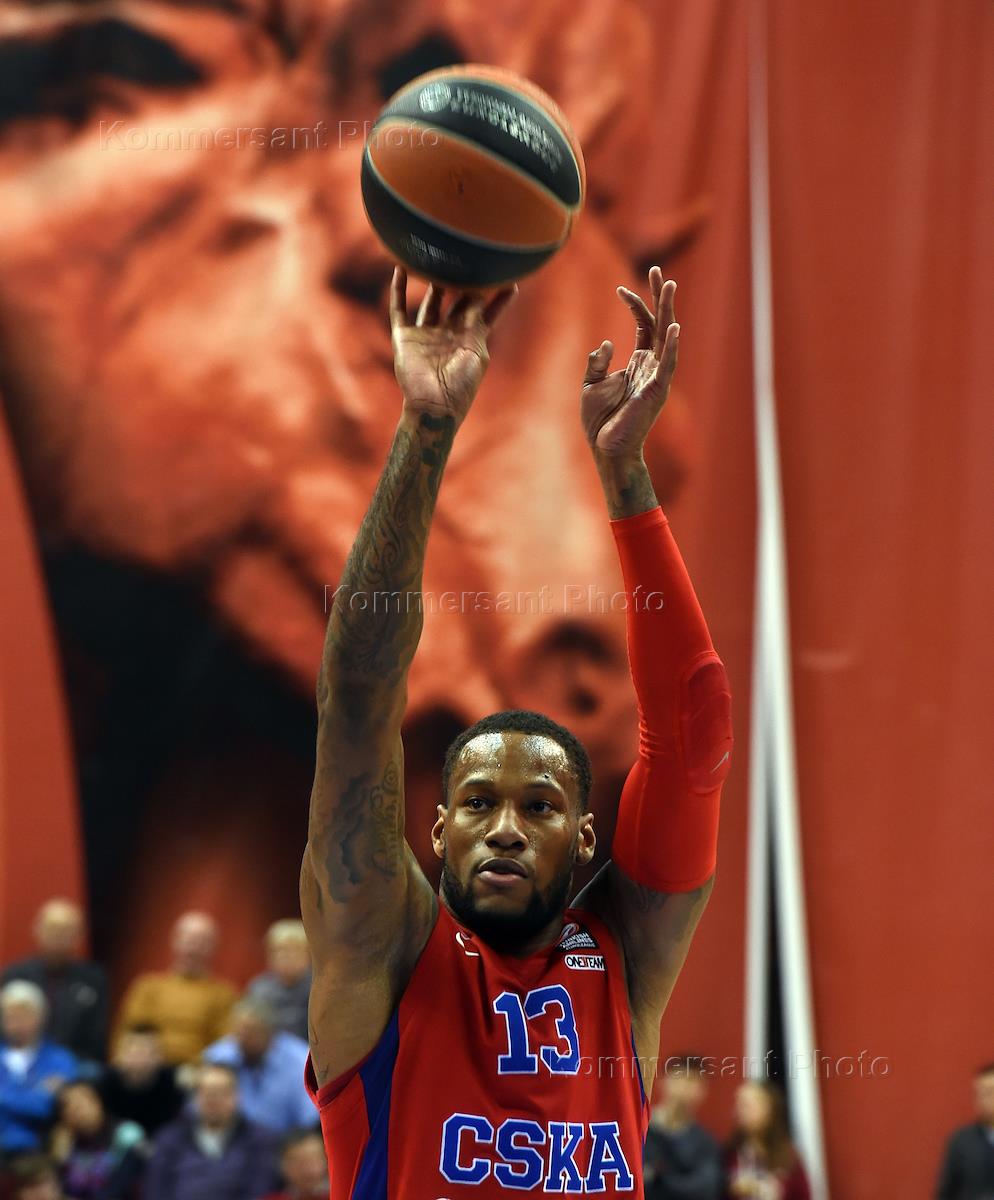 Евролига по баскетболу. Матч между командами ЦСКА (Россия, Москва) и "Милан" (Италия, Милан) прошел в универсальном спортивном комплексе (УСК) ЦСКА. Баскетболист ЦСКА Сонни Уимс во время матча.