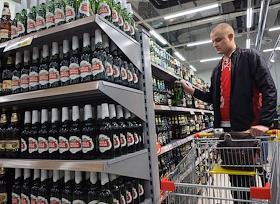 Покупатель в отделе пива гипермаркета "О'Кей" в торговом комплексе "Водный" у станции метро "Водный стадион".
