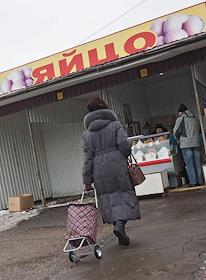 Коптевский колхозный рынок. Покупатели у торговой палатки с домашними яйцами.