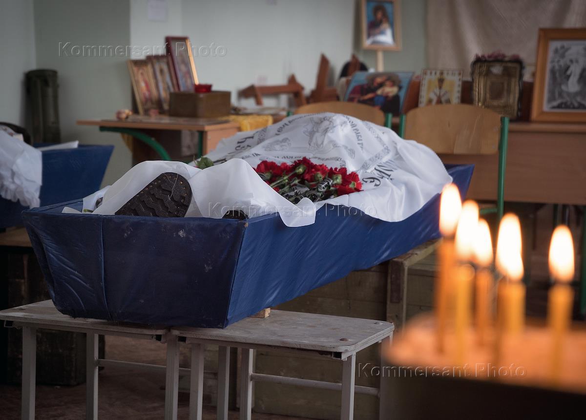 Обстановка в Донецке. Траурная церемония прощания с тремя бойцами ополчения самопровозглашенной Донецкой Народной Республики (ДНР), погибшими в ходе боя 14 февраля недалеко от села Логвиново (север "Дебальцевского котла").
