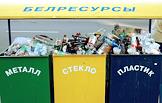 Жанровая фотография. Надпись над полными мусорными баками "Белресурсы".