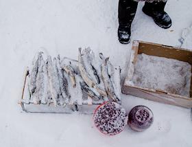 Жанровая фотография. Блюдо с домашним творогом и топор в пеньке.