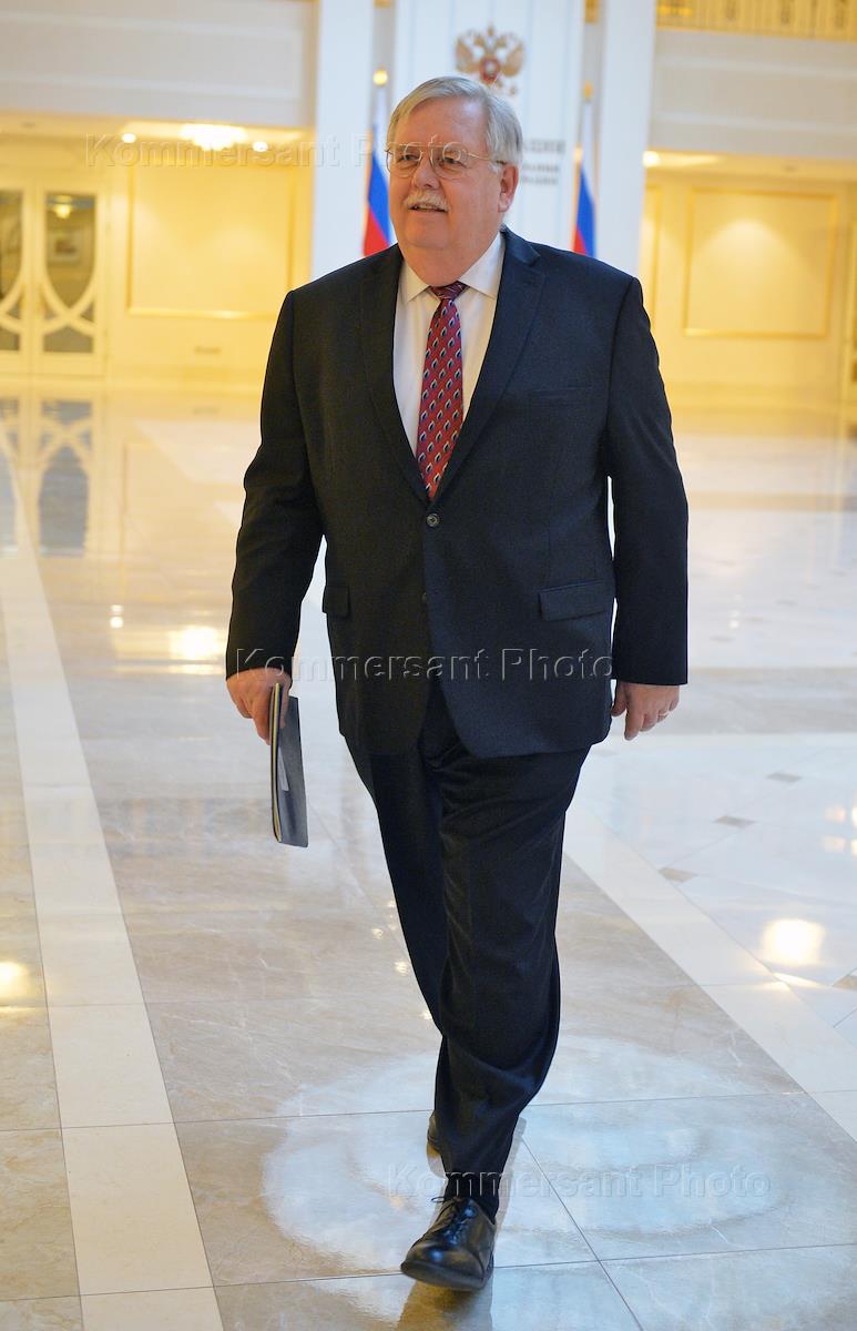 Чрезвычайный и Полномочный Посол США Джон Теффт после встречи с председателем Комитета Совета Федерации России по международным делам Константином Косачевым в Совете Федерации России.