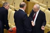 Заместитель председателя комитета Государственной думы России по труду, социальной политике и делам ветеранов Николай Коломейцев (слева) и лидер Коммунистической партии России (КПРФ), член комитета ГД России по науке и наукоемким технологиям Геннадий Зюганов (в центре) на пленарном заседании Государственной думы России.