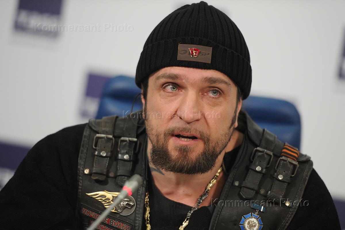 Президент Российской ассоциации байкеров Александр Залдостанов во время пресс-конференции движения "Антимайдан".