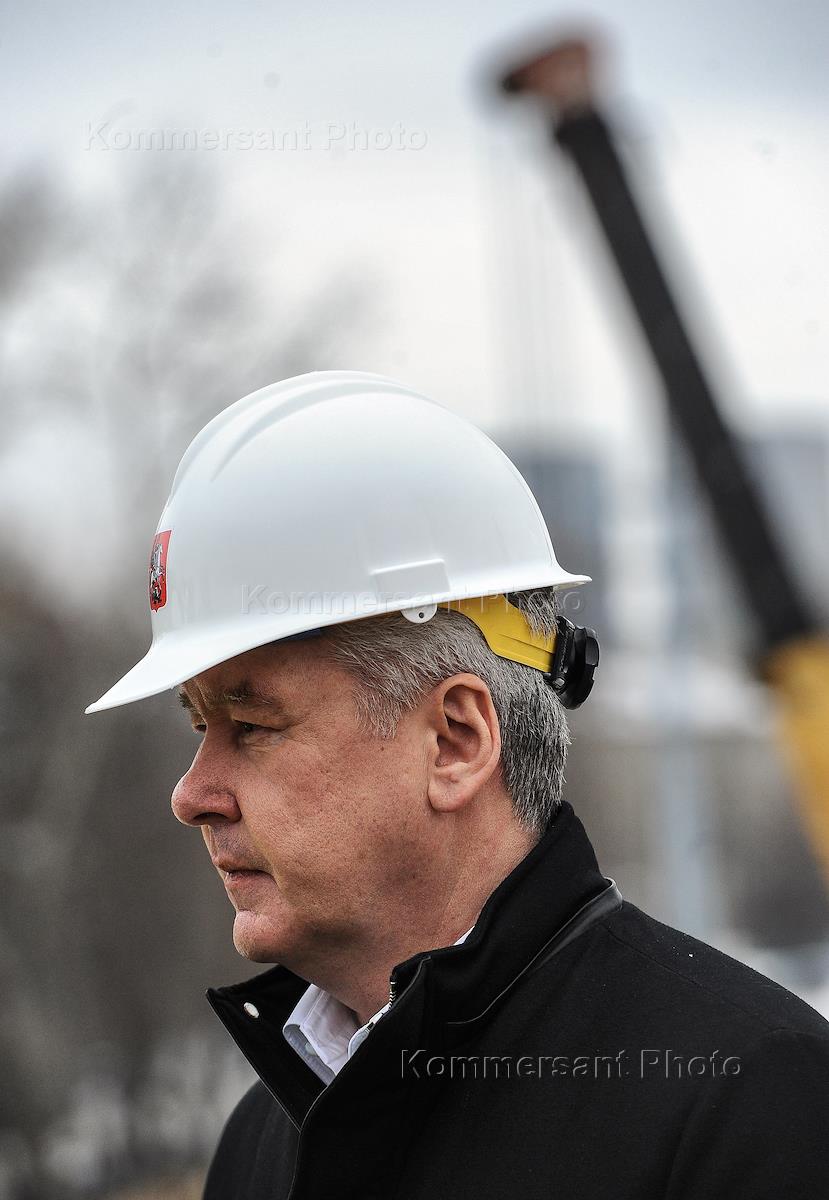 Мэр Москвы Сергей Собянин во время осмотра хода работ по реконструкции Коптевского путепровода, проходящего над путями Малого кольца Московской железной дороги (МКЖД).