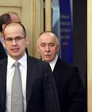 Заседание Общественного совета при Федерации по контролю за оборотом наркотиков (ФСКН) России прошло в здании Общественной палаты России. сопредседатель Центрального штаба ОНФ Александр Бречалов (слева) и руководитель ФСКН Виктор Иванов (справа) во время заседания.