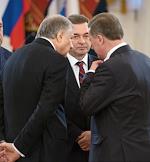 Помощник президента России Евгений Школов (в центре) на встрече президента России Владимира Путина с ветеранами Великой Отечественной войны в Большом Кремлевском дворце.