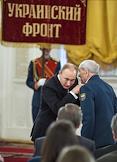 Церемония вручения президентом России Владимиром Путиным ветеранам Великой Отечественной войны юбилейных медалей "70 лет Победы в Великой Отечественной войне 1941–1945 годов" в Георгиевском зале Большого Кремлевского дворца.