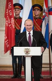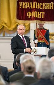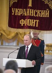 Президент России Владимир Путин на церемонии вручения ветеранам Великой Отечественной войны юбилейных медалей "70 лет Победы в Великой Отечественной войне 1941–1945 годов" в Георгиевском зале Большого Кремлевского дворца.