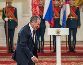 Министр обороны России Сергей Шойгу на церемонии вручения ветеранам Великой Отечественной войны юбилейных медалей "70 лет Победы в Великой Отечественной войне 1941–1945 годов" в Георгиевском зале Большого Кремлевского дворца.