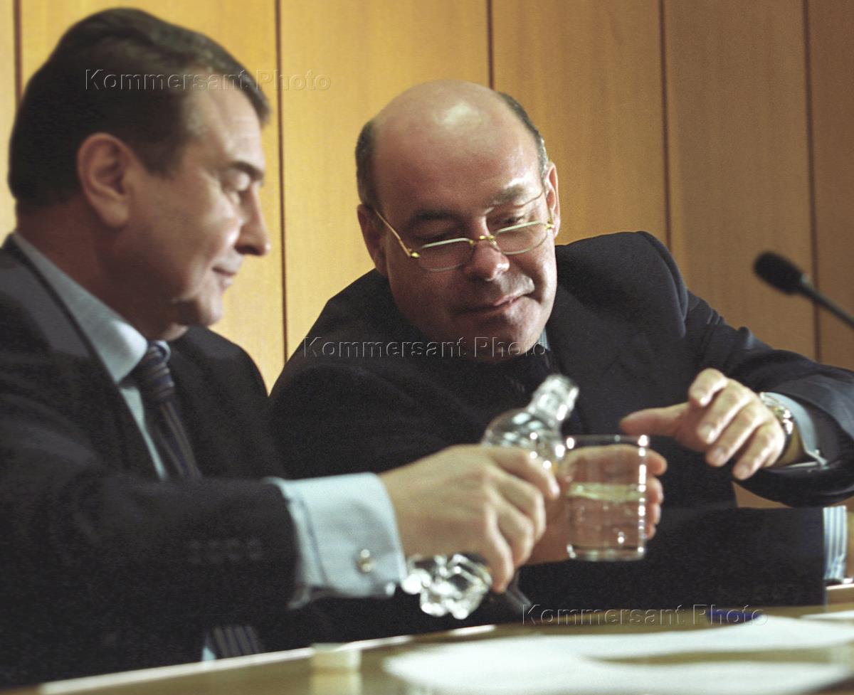 Russian Culture Minister Mikhail Shvydkoy (right) meets his Ukrainian counterpart Yury Bogutsky (left).
