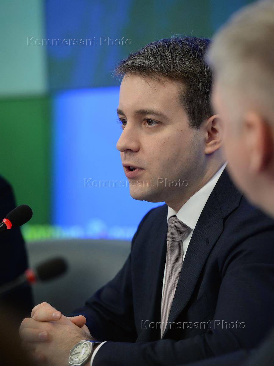 Директор по новым услугам оператора сотовой связи "МЕГАФОН" Дмитрий Юмашев во время пресс-конференции, посвященной Всероссийской акции "Ура Победе!" и запуску тематических интернет-ресурсов. Пресс-конференция прошла в МИА "Россия сегодня".