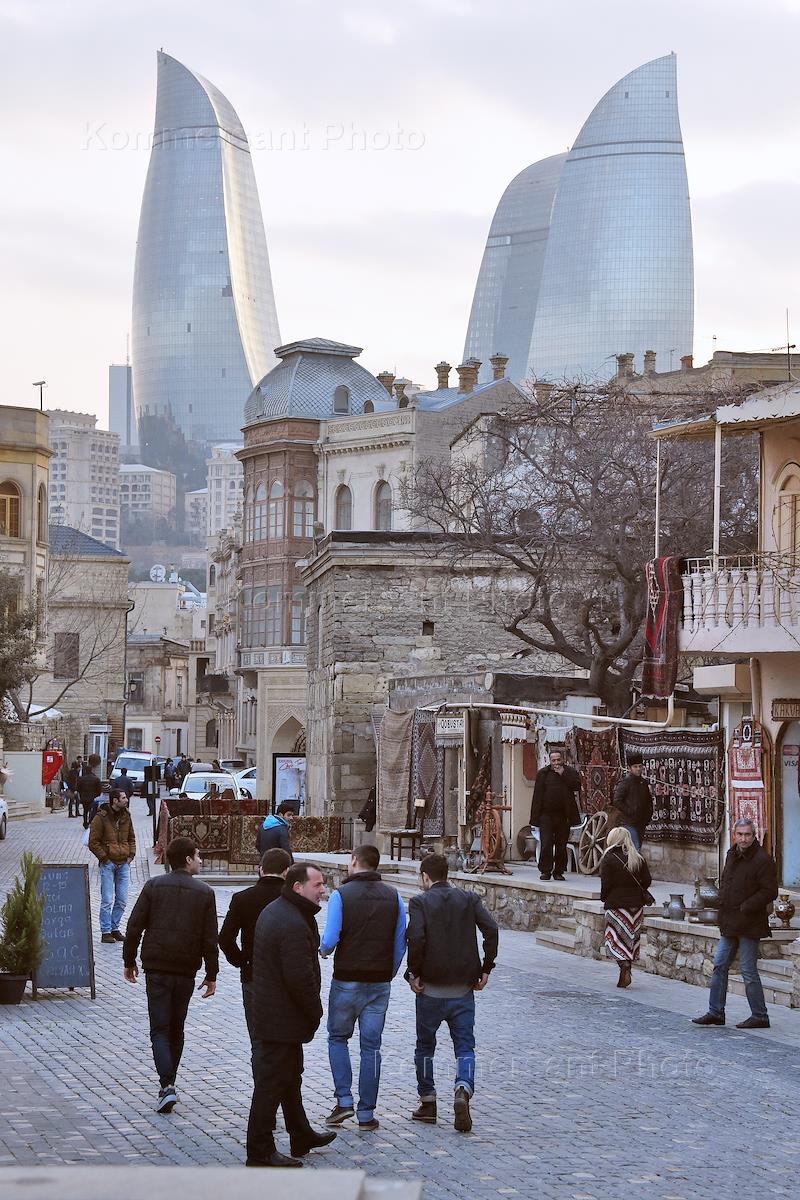 Виды Баку. Старый город и гостиничный комплекс Fairmont Hotel.