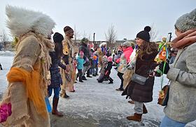 Жанровая фотография. Празднование Масленицы в Москве. Хоровод в Парке Горького.