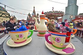 Жанровая фотография. Празднование Масленицы в Москве. Карусель на Красной площади.