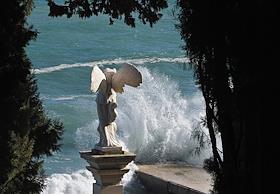 Лечебно-оздоровительный комплекс "Айвазовское" и прилегающий парк - памятник садово-паркового искусства в поселке Партенит. Скульптура купидона в парке.