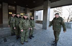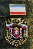 Жанровая фотография. Нашивка на рукаве форма сотрудника Народного ополчения Крыма.