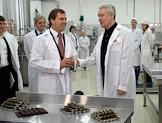 Мэр Москвы Сергей Собянин (справа) на церемонии запуска опытной производственной линии по производству низкоуглеводного шоколада в Инновационном центре холдинге "Объединенные кондитеры".