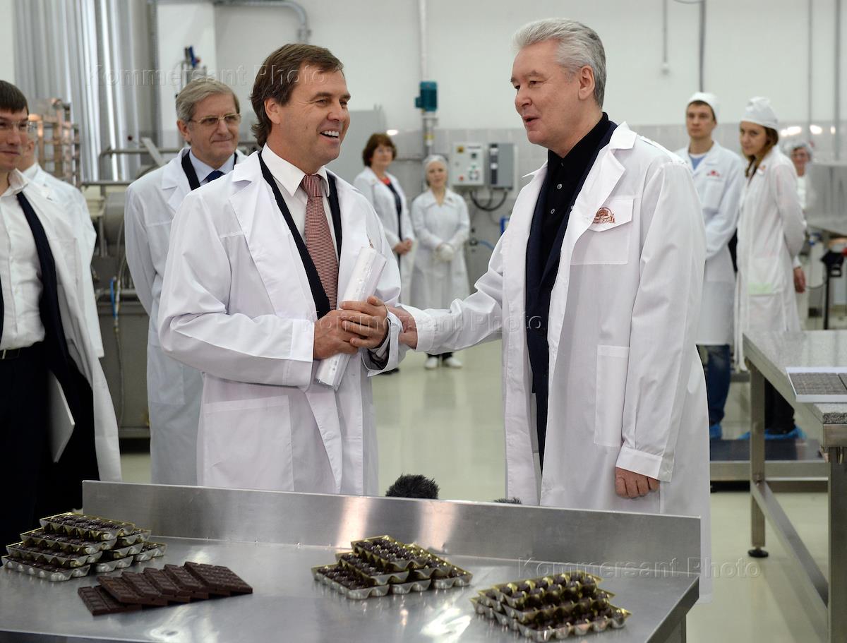 Мэр Москвы Сергей Собянин посещает фабрику "Объединенные кондитеры"..