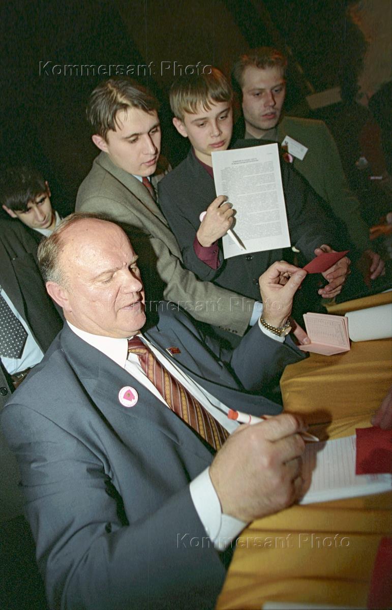 Лидер КПРФ Геннадий Зюганов на съезде коммунистического союза молодежи. Съезд прошел в поселке Липки.