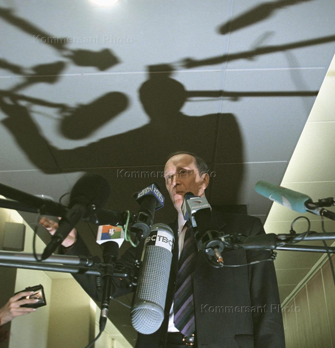 Chairman of the Russian Central Electoral Commission (Centrizbirkom - CIK) Alexander Veshnyakov is interviewed after joint meeting of CIK officials and leaders of political parties summoned to discuss the parliamentary election to be held in December 2003.
