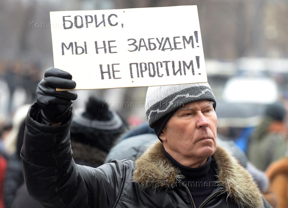 Funeral march in remembrance of co-chairman of political party RPR-Parnas (Republican Party of Russia – People's Freedom Party) Boris Nemtsov, who was shot in Friday night at Bolshoy Moskvoretsky Bridge. Participants of the march went from metro station 'Kitay-gorod' to Bolshoy Moskvoretsky Bridge.
