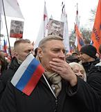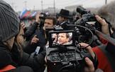 Траурный марш в память о сопредседателе политической партии "РПР-ПАРНАС" Борисе Немцове, который был застрелен в ночь с пятницы на субботу на Большом Москворецком мосту. Участники марша прошли от метро "Китай-город" до Большого Москворецкого моста. Член бюро движения "Солидарность" Илья Яшин во время марша.