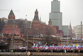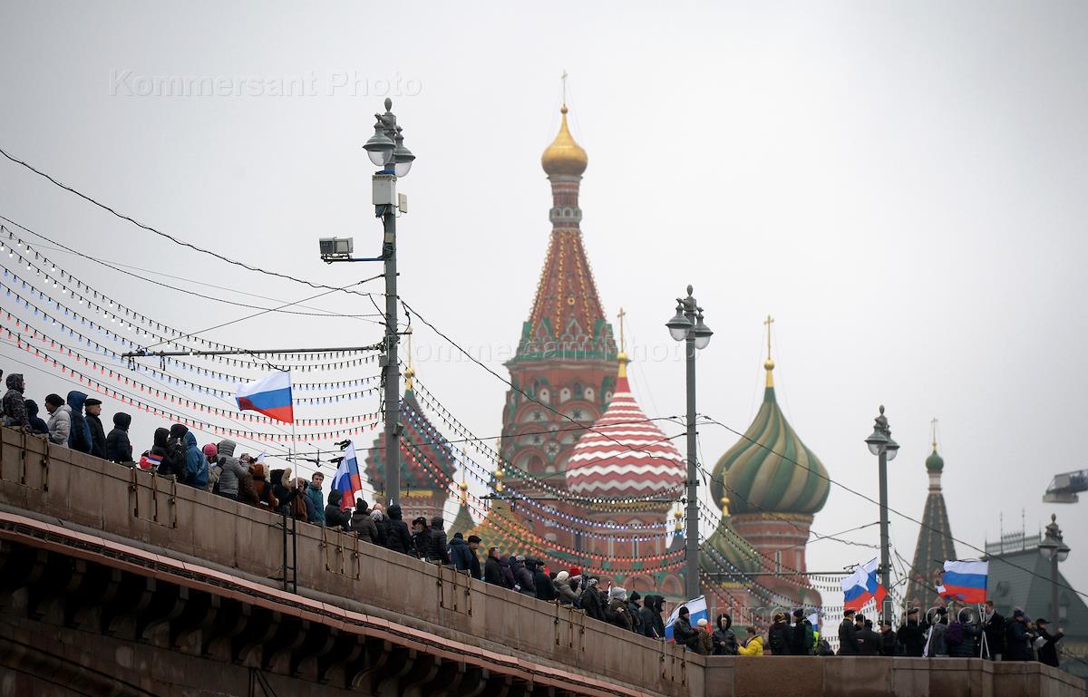 Траурный марш в память о сопредседателе политической партии "РПР-ПАРНАС" Борисе Немцове, который был застрелен в ночь с пятницы на субботу на Большом Москворецком мосту. Участники марша прошли от метро "Китай-город" до Большого Москворецкого моста.