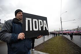 Председатель Российского народно-демократического союза Михаил Касьянов (в центре) во время траурного марша в память о сопредседателе политической партии "РПР-ПАРНАС" Борисе Немцове, который был застрелен в ночь с пятницы на субботу на Большом Москворецком мосту. Участники марша прошли от метро "Китай-город" до Большого Москворецкого моста.