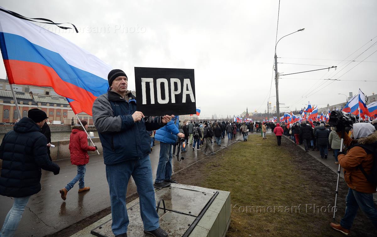 Траурный марш в память о сопредседателе политической партии "РПР-ПАРНАС" Борисе Немцове, который был застрелен в ночь с пятницы на субботу на Большом Москворецком мосту. Участники марша прошли от метро "Китай-город" до Большого Москворецкого моста.